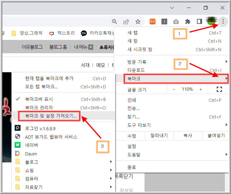 분류해놓은 폴더 그대로 크롬의 '북마크'에 옮겨보고자 합니다.