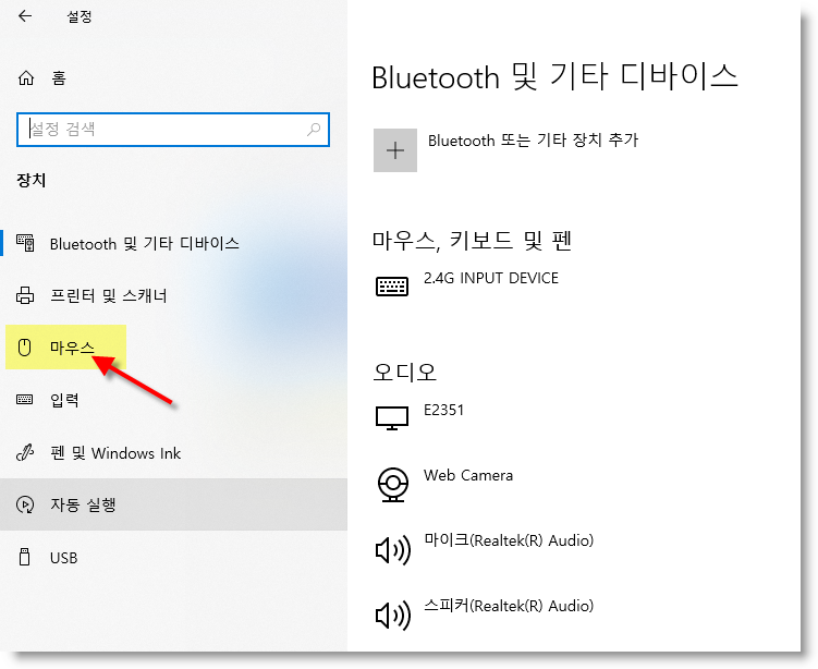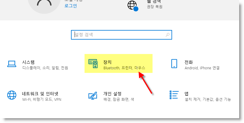그리고 '장치' 를 클릭하면 아래 화면처럼 바뀌고