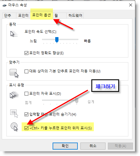 그럴때 마우스 포인터 위치를 쉽게 찾는 방법이라고나 할까요? ㅎㅎ