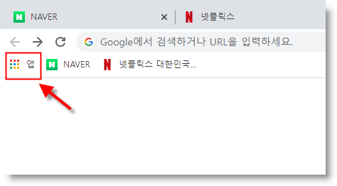 먼저 크롬브라우저의 왼쪽 상단의 앱을 클릭합니다.