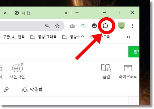 위 그림처럼 확장프로그램 아이콘을 클릭