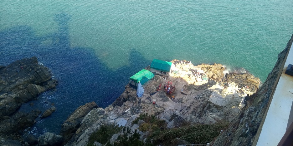 등대로 내려가는 길에 위를 보고 찍은 사진입니다.