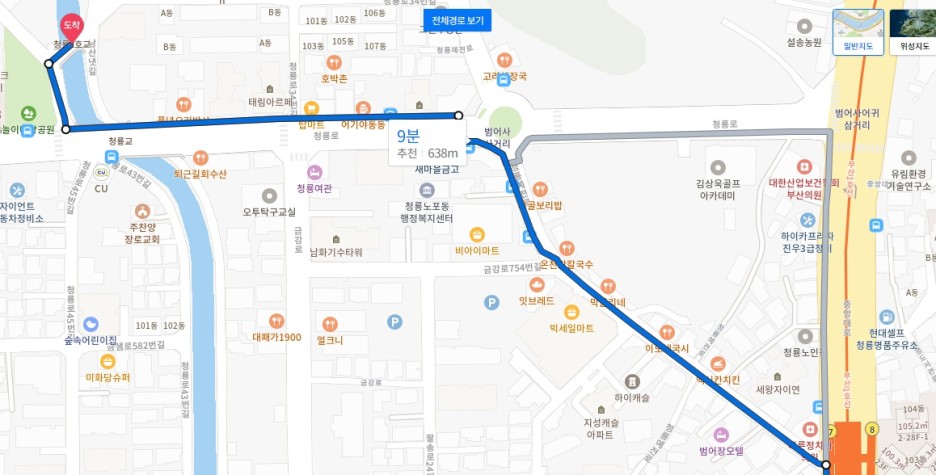 부산 지하철 1호선 범어사역에서 걸어서 9분정도이고,