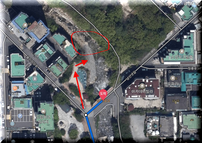위 사진 근방으로 오신후 화살표 시작지점에서 보면