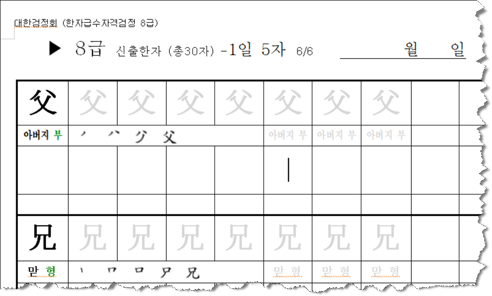 미약하고 누구나 만들 수 있는 한자쓰기 연습장이만, 그래도 누군가에게는 도움이 될 수 있는 자료가 되기를 기대합니다.