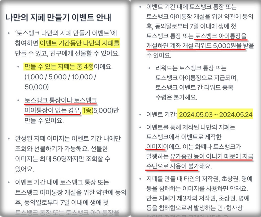 AI지폐를 만들수 있는 이벤트기간은 2024.05.03~05.24일 까지 입니다.